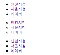 <ol>에는 이런 모양도 있다. 형식은 type에 기본&disc(●), circle(○), , square(■)