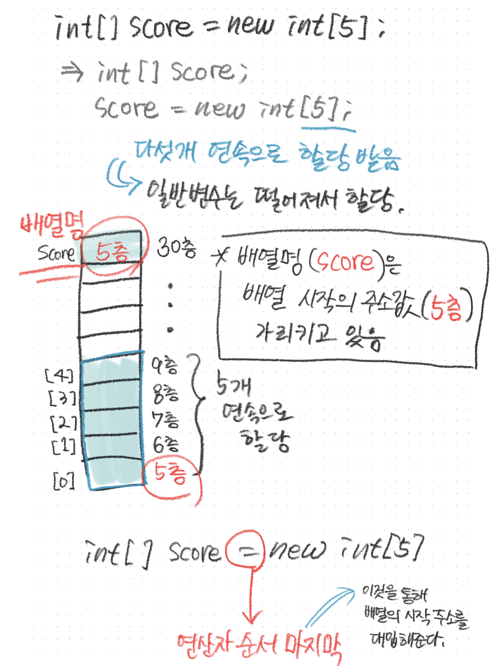 마지막에 = 연산자로 스코어에 배열의 첫번째 주소를 대입해준다.