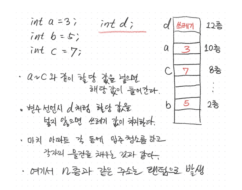 메모리 상에서 내부에 어떻게 변수가 만들어질까?