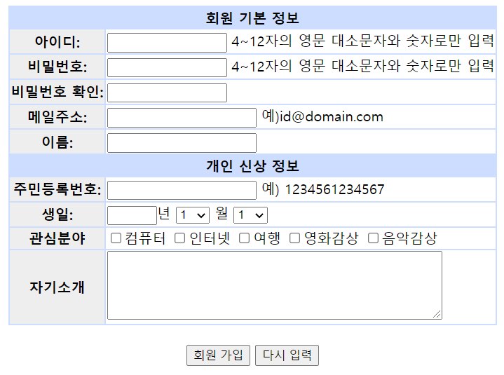 <th colspan="2" colspan="2" bgcolor="#CCDDFF">개인 신상 정보</th>