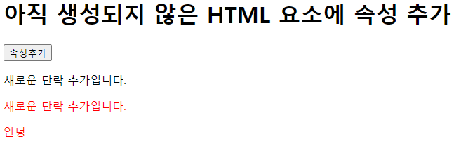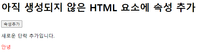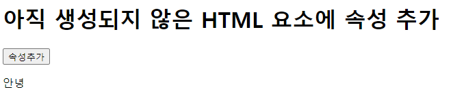 <h1>아직 생성되지 않은 HTML 요소에 속성 추가</h1>