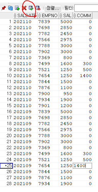 수정하고 위에 빨간색 동그라미 버튼(COMMIT)을 누르면 값이 바로 수정됨
