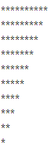 j를 10부터 시작하고 j>=i 일 때 실행을 하면 위 그림과 반대로 출력이 됩니다. 증가가 되는 게 아니라 증감이 되어야 하는 게 맞겠죠? 그래서 i줄은 그대로고 j만 (j=10; j>=i; j--)가 됩니다.