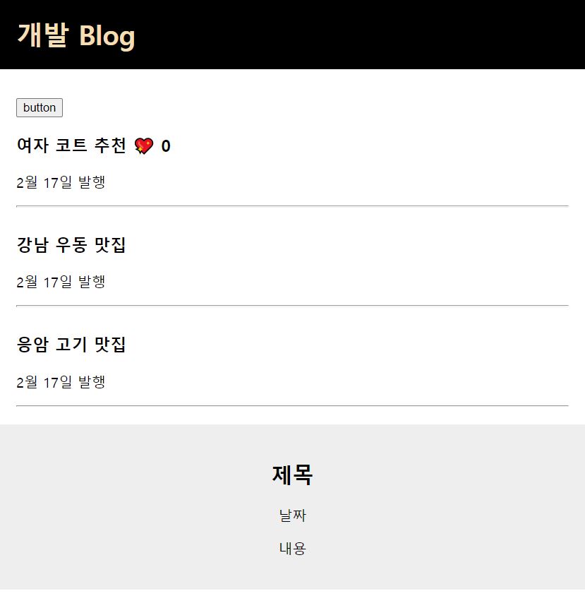let [글제목, 글제목변경] = useState(['남자 코트 추천', '강남 우동 맛집', '응암 고기 맛집']);
