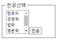 전공 체크 전공 컴퓨터 정보통신 법학 경영학 영문학 var idx = ff.ss.options[ff.ss.selectedIndex].value; ff.ss.셀렉트 되어 있는 것을 찾는다. value 그걸 갖고와라 ff 폼 이름이 s..