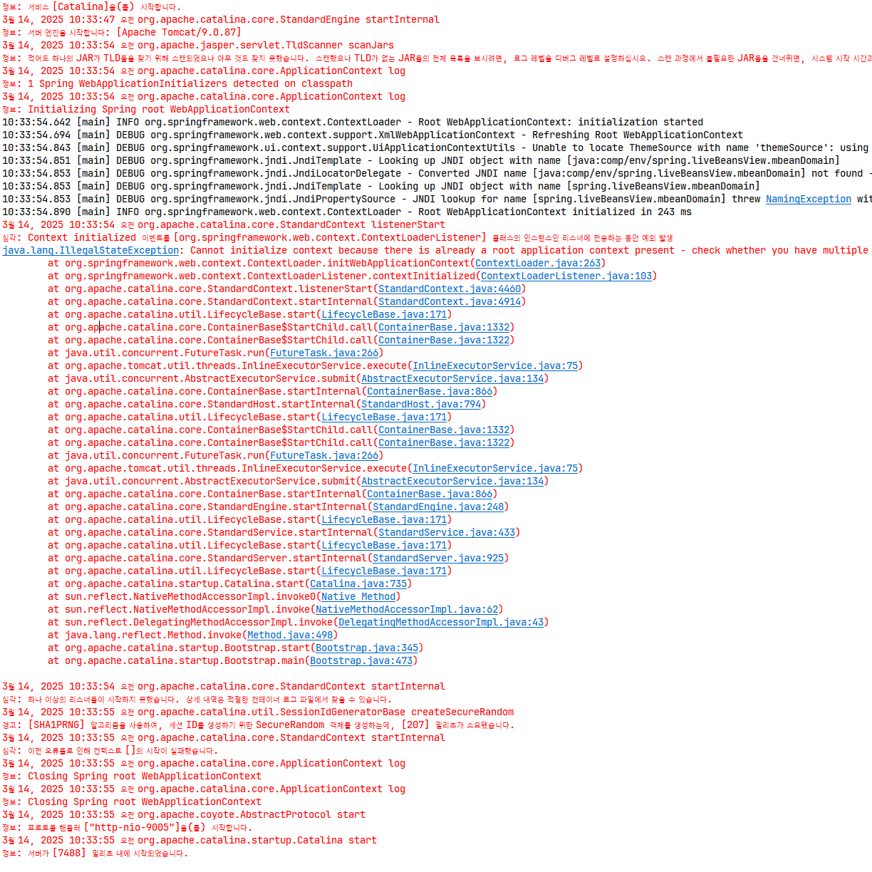 Root ApplicationContext가 이미 존재하는데, 재생성 하려고 해서 충돌 발생