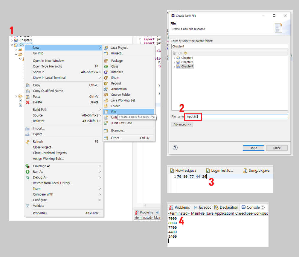 input.txt 라는 파일을 읽어주는 객체이다. 객체니까 new 연산자로 생성을 한다.