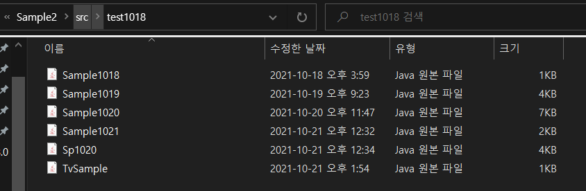 아이콘을 누르면 Sample2 프로젝트 안에 있는 src 폴더로 간다.